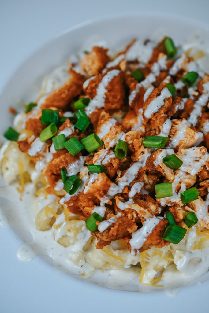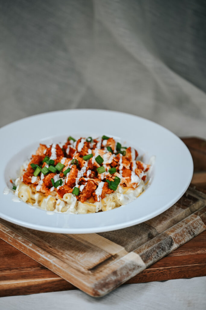 Need some comfort food to get you through January? The Buff Mac & Cheese will satiate you all month long. 3 cheese mac & cheese, shredded cheddar jack, chicken tenders tossed in buffalo sauce, drizzled with ranch & topped with green onions.